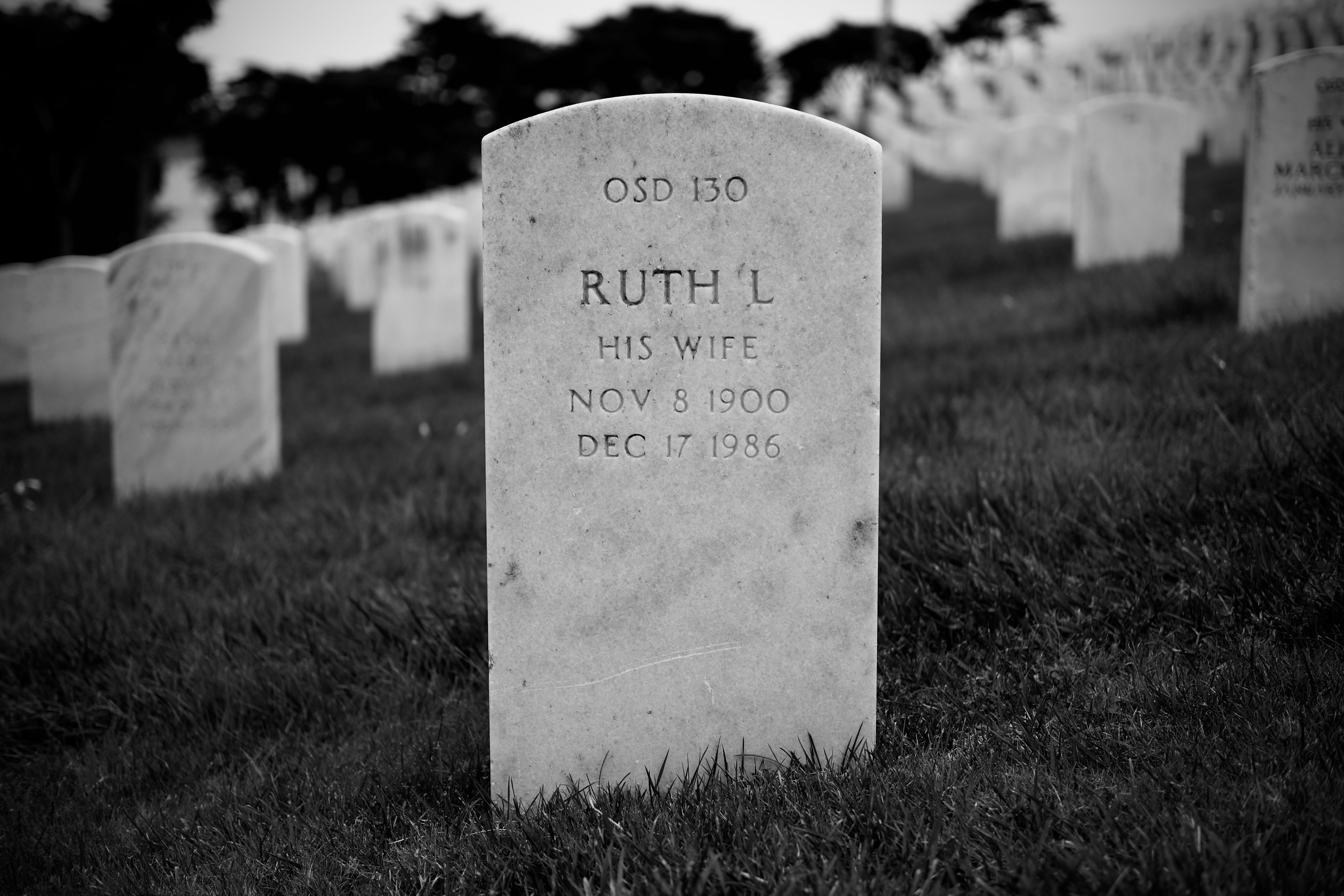 My grandfather’s name faces outward, his rank and service carved into the stone. I never knew him. On the back is my grandmother, Ruth L., identified simply as his wife, along with the dates that mark the span of her life.