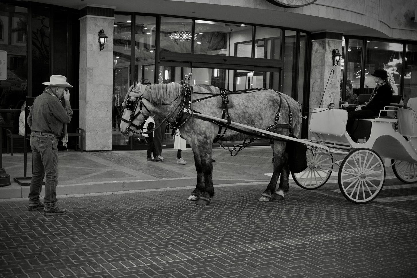 We looked in some shop windows and strolled around a little longer and finally made our way back to the car. The horse-drawn carriage had circled around the center and stopped not far from where we were parked.