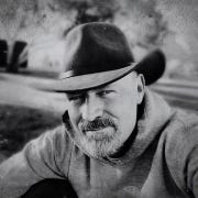 An old cowboy. Seventies perhaps. Rugged jeans. Scarf. Weathered hat. He looked cut from another century. He kept to the edges of the crowd, slipping behind beams and trees and reappearing without notice.