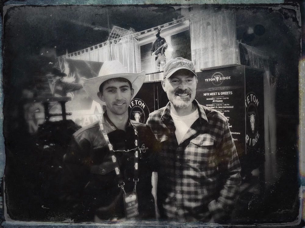 My wife and I were wandering the south hall of the Las Vegas Convention Center during the annual Cowboy Christmas show. I had my Fuji rangefinder with me and was clicking away when I spotted the PBR booth and a real cowboy standing beside it.