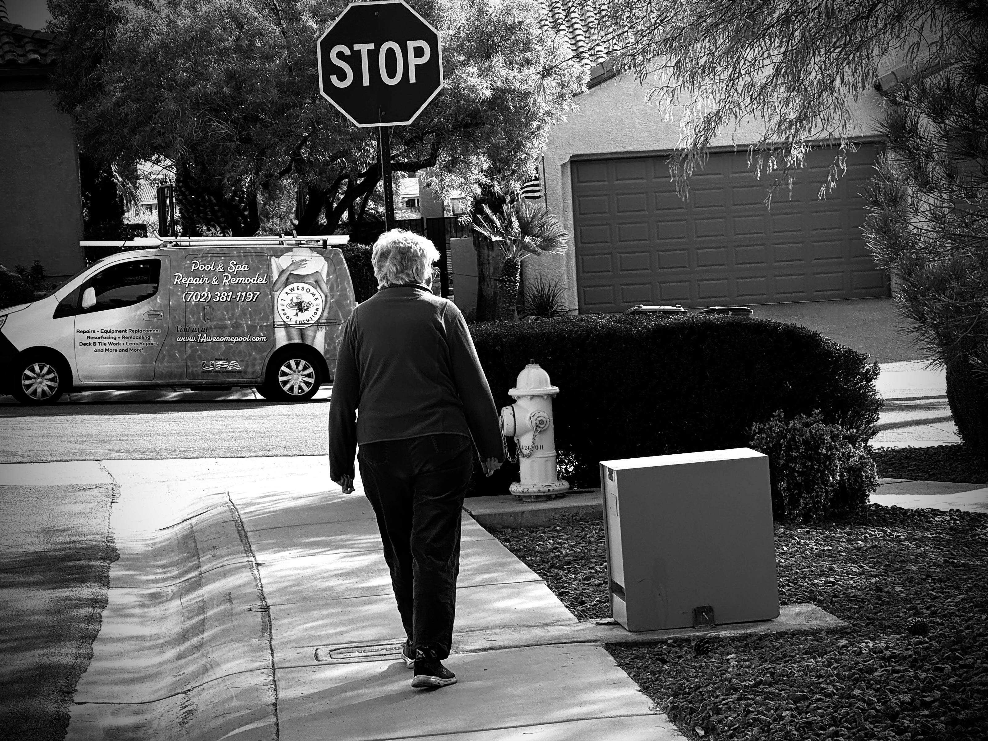 Or the woman walking in my neighborhood who lingered by a stop sign to look at the trees, then at her hands, then down at the ground, as if confused or disoriented or gripped by sorrow.