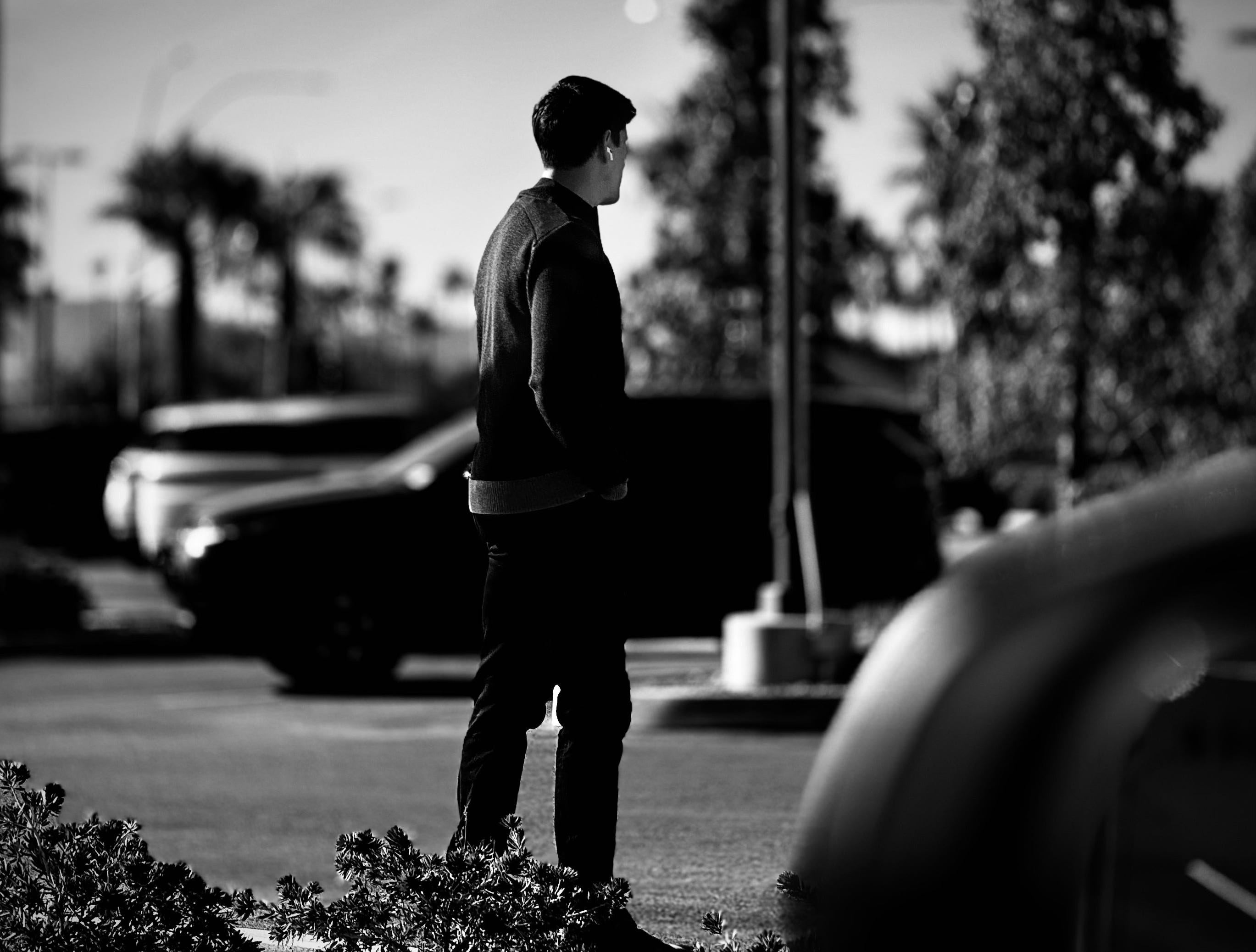 Like the young salesman pacing the front lot of a car dealership and stopping now and then in his solitude to stare down at his shoes, lost in thought. Or the short-sighted man sitting in a women’s clothing boutique among voiceless, frozen mannequins.